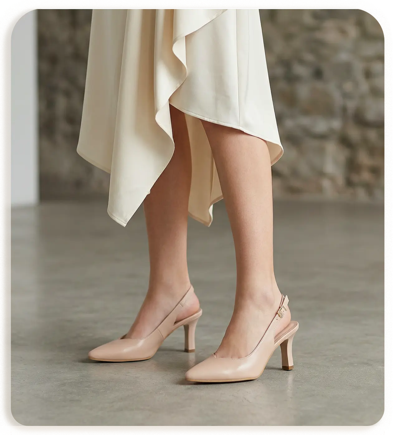 Dimentica il classico bianco: Atelier Zagara nella sua versione nude è pensata per la sposa e l’invitata che cercano una calzatura sofisticata, capace di fondersi con l’incarnato e slanciare la figura con discrezione ed eleganza. Una slingback luminosa e versatile, ideale per chi desidera stabilità e stile dal primo passo verso l’altare fino all’ultimo ballo.