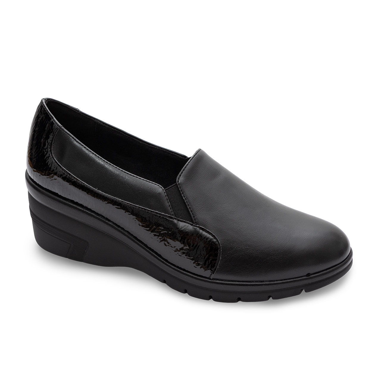 Questo modello slip-on combina raffinatezza e praticità per accompagnarti nelle giornate più dinamiche. Realizzato in morbida vera pelle nera con dettagli in naplak lucido, offre un look moderno e versatile. La fodera in tessuto maglina garantisce una sensazione di morbidezza, mentre la suola flessibile e antiscivolo con altezza di 40 mm assicura stabilità e leggerezza. Il sottopiede in memory foam e la soletta in vera pelle regalano un comfort eccezionale, ideale per chi desidera una calzatura elegante ma perfetta per un utilizzo prolungato. Un modello perfetto per chi cerca una scarpa pratica e sofisticata, con il massimo del comfort ad ogni passo.